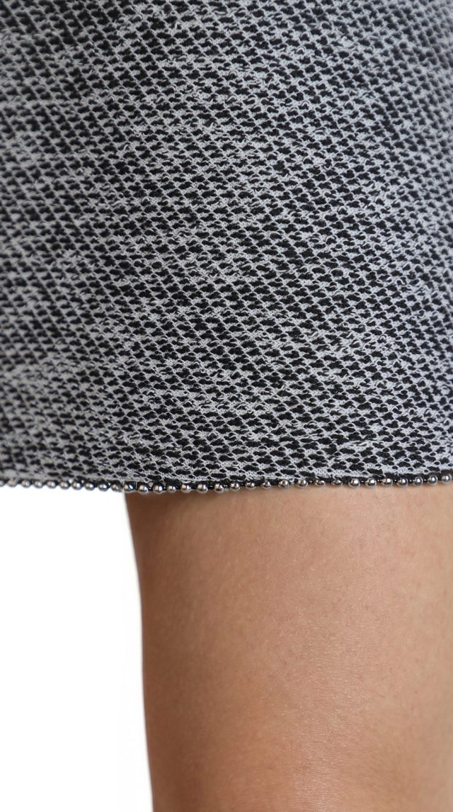 Новая юбка концерна Max Mara светло-серого цвета меланж с декором в виде стальных бусинок по подолу. Фасон «А-трапеция» с застежкой сбоку на молнию. Вытачки по спинке для комфортной посадки. В составе: 60% п.э, 40% хлопок, на подкладе из п.э — ткань средней плотности, хорошо держит форму. Пошив — Турция. Состояние — новое, из аутлета концерна MaxMara (ярлык бренда надрезан — это политика аутлета).