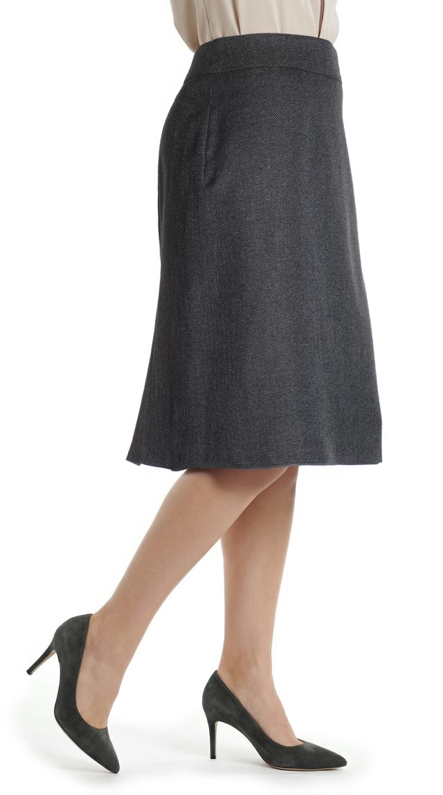 Женственная шерстяная юбка Max Mara темно-серого цвета с воланами по спинке. Широкий пояс по талии. Застежка на молнию. В составе 85% шерсть, 13% п/э, 2% эластан, на подкладе из 67% ацетата, 33% пэ. Состояние — идеальное, как новое.