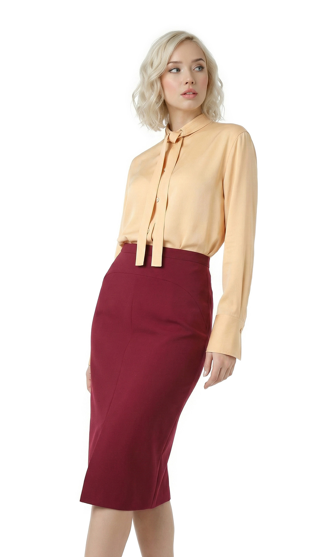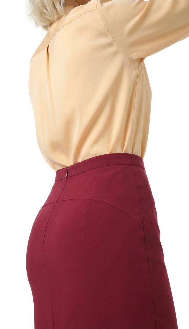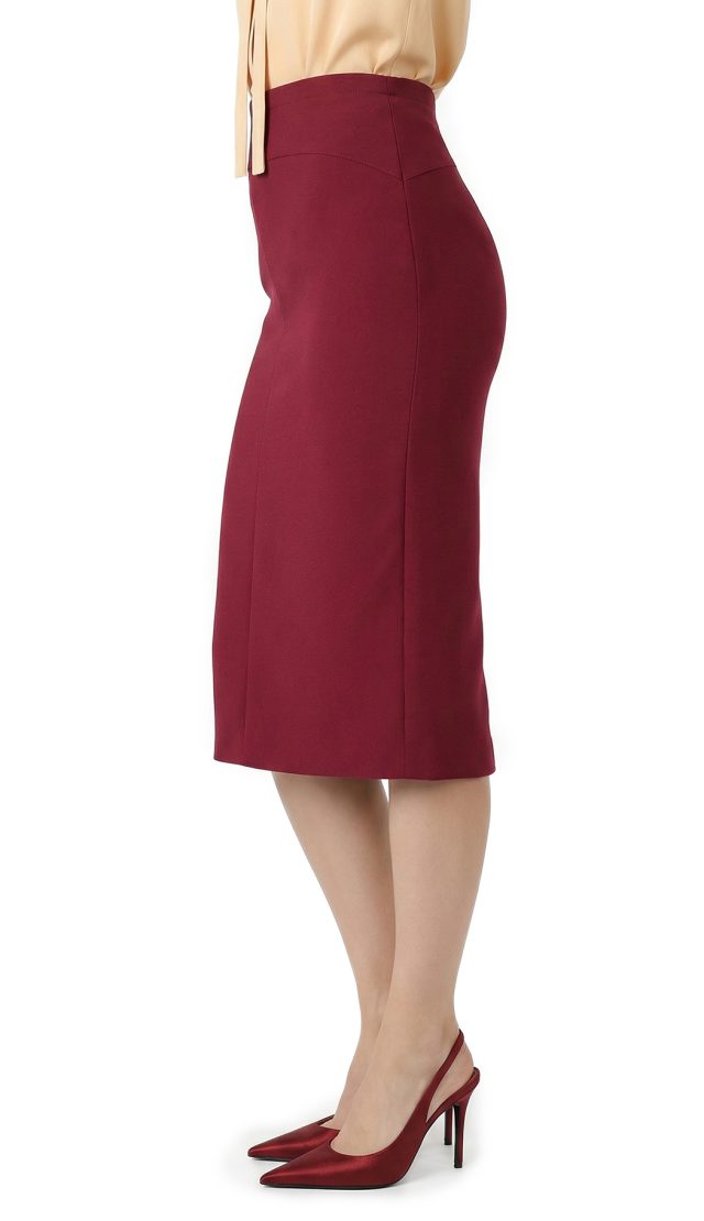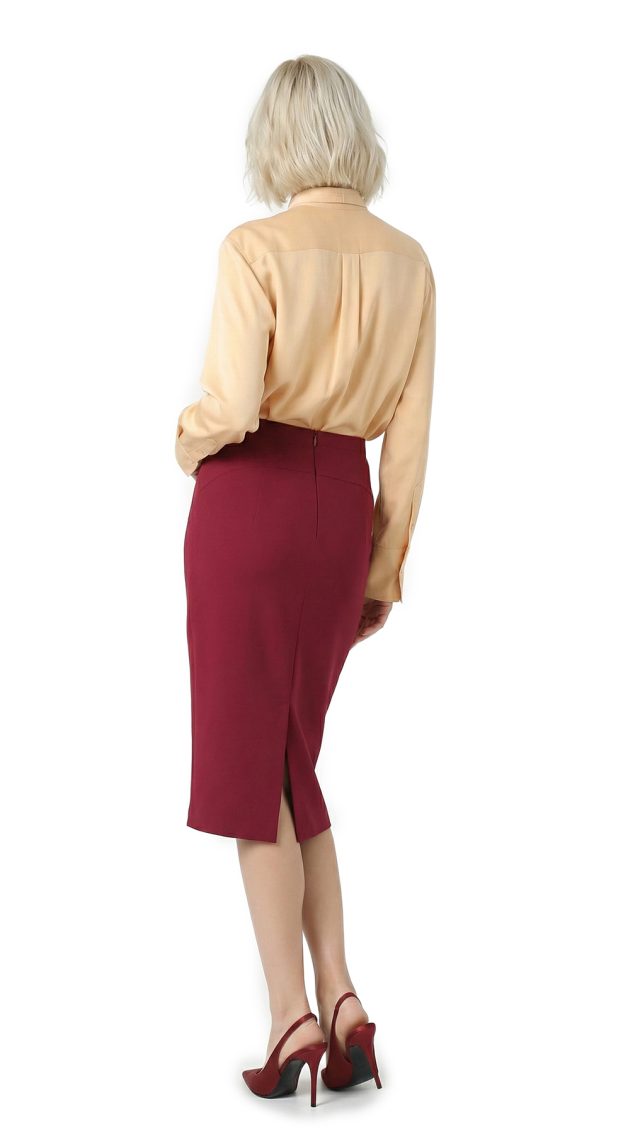 Новая юбка карандаш концерна Max Mara (коллекция Studio) приглушенного малинового цвета. Эффектная кокетка по талии. Застежка по спинке на молнию. Вытачки и глубокий вырез шлички для комфортной посадки. В составе: 71% триацетат (аналог натурального шелка), 29% п.э, на подкладе из 70% ацетата, 30% п.э: ткань экстра качества: средней плотности, очень мягкая, бархатистая, фактурная (в мелкий рубчик). Пошив — Италия. Состояние — новое, из аутлета концерна MaxMara (ярлык бренда надрезан — это политика аутлета).