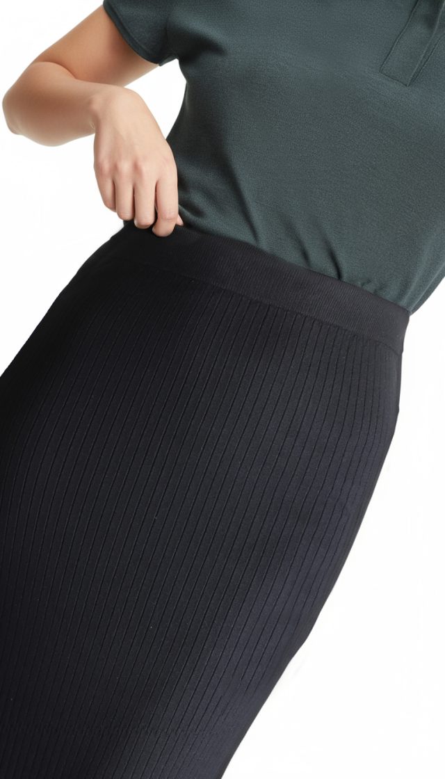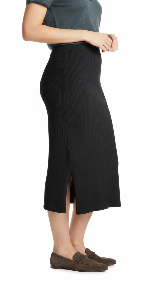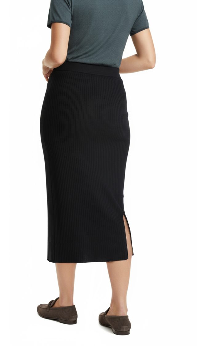 Новая трикотажная юбка концерна Max Mara черного цвета с фактурой «резинка». Удлиненный фасон с небольшими вырезами по бокам для комфорта в движении. Комфортная резинка по талии. Без застежки. Пошив — Италия. В составе: 72% вискоза, 28% п.э, без подклада — ткань экстра качества: плотная, мягкая, эластичная, практичная (не растягивается, как дешевые вещи из Китая, не скатывается при стирке). Состояние — новое, с фирменной биркой Max Mara. Цена на бирке — 189 евро.