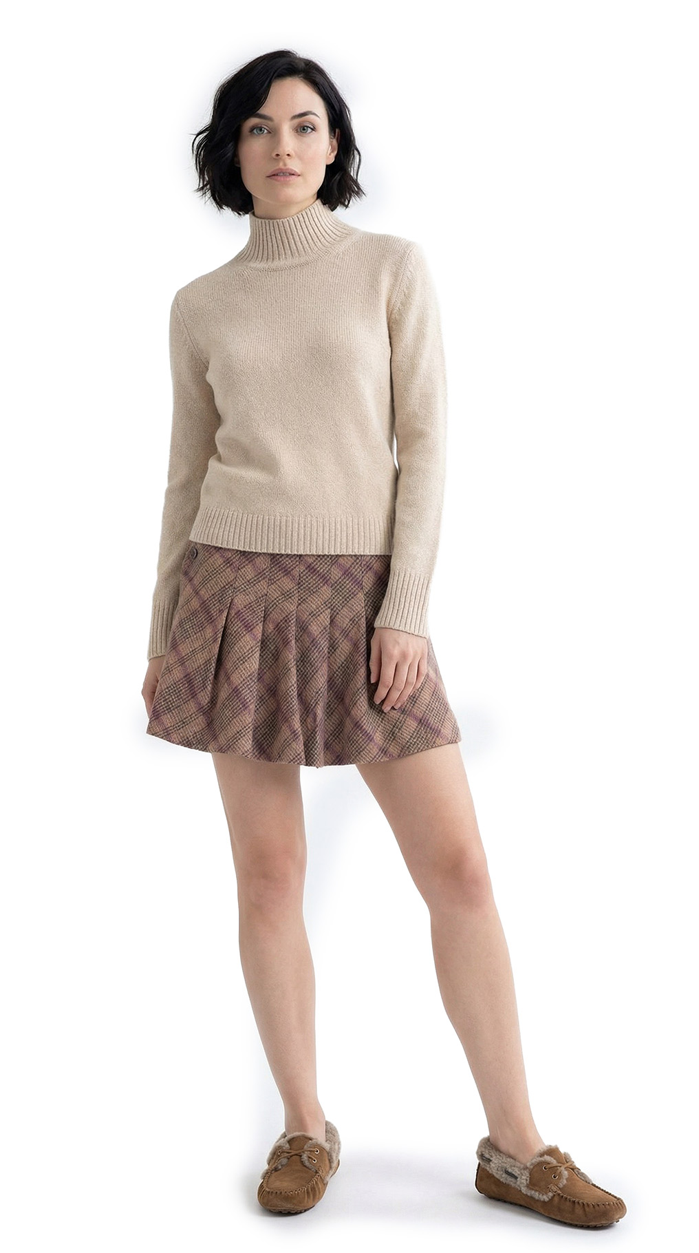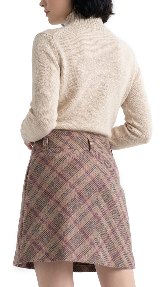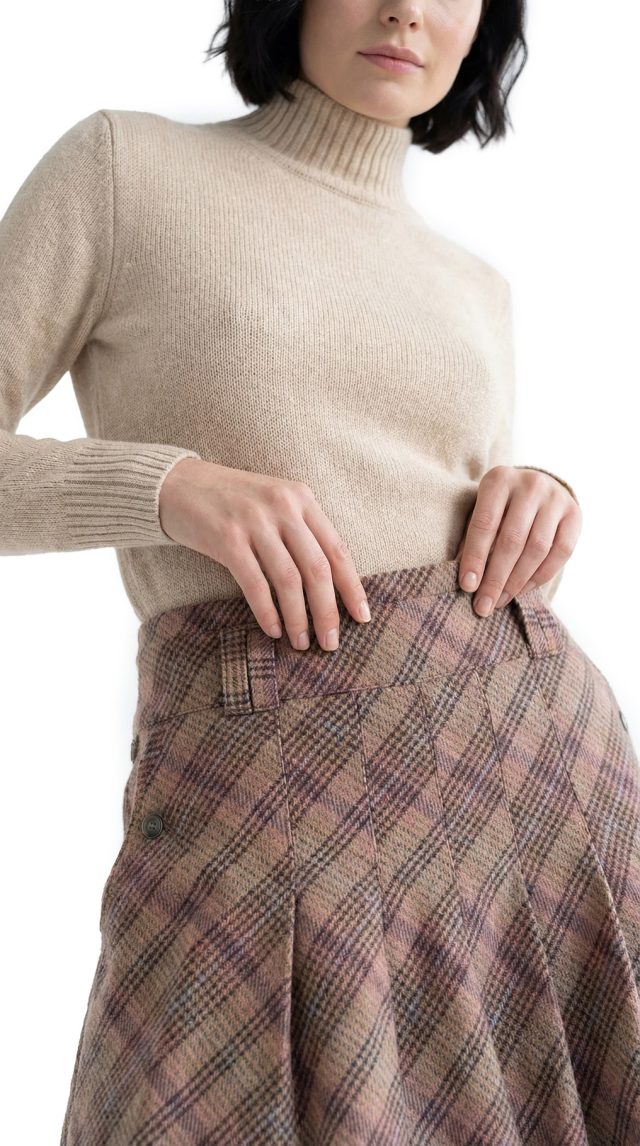 Шерстяная юбка голландского бренда Mexx бежевого цвета с диагональным принтом «гусиной лапкой». Игривый фасон со складками и врезными кармашками по переду. Широкий пояс со шлицами под ремень. Застежка сбоку на молнию и кнопки. В составе: 54% шерсть, 40% п.э, 5% др, 1% эластан, на подкладе из п.э — ткань плотная, мягкая, хорошо садится по фигурке. Состояние — отличное.