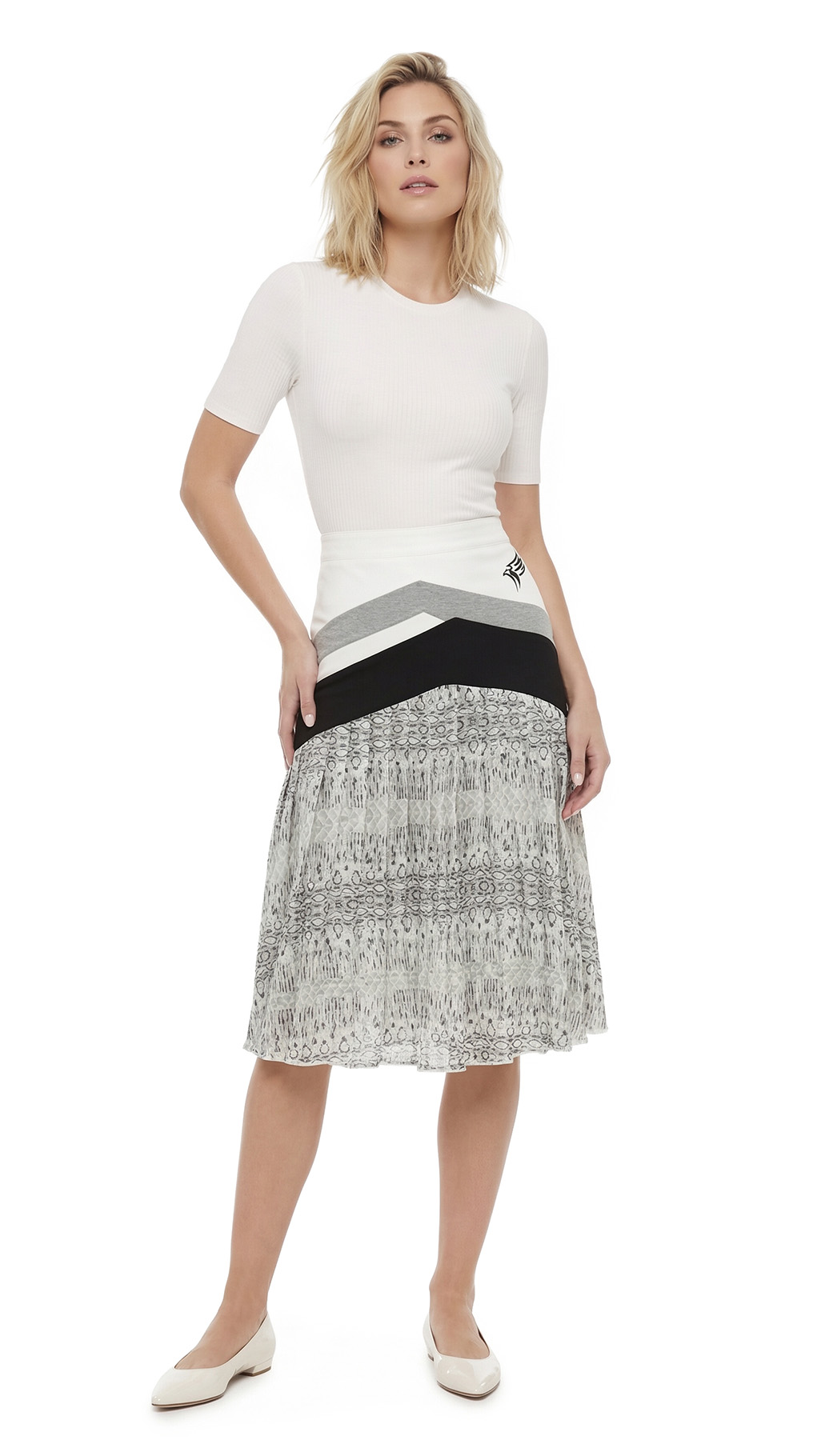 Оригинал с голограммой подлинности. Новая юбка премиального итальянского бренда Roberto Cavalli из серии спортивного шика в сочетании классических цветов: черного, молочно-белого и серого. Верх юбочки из плотного вискозного трикотажа, низ — из мягкого плиссированного сатина с контрастным змеиным принтом, являющимся характерной чертой стиля Кавалли. Широкий эластичный пояс по талии. Застежка сбоку на молнию. В верхней правой части — фирменный логотип бренда. В составе: 70% вискоза, 26% полиамид, 4% эластан (верх), 100% п.э (плиссированный низ): ткань экстра качества: мягкая, эластичная. Состояние — новое, с оригинальной биркой Roberto Cavalli. Цена на бирке — 250 евро. По спинке в верхней части сеть небольшое пятнышко (см. фото) — легко выводится: существенно учтено в цене.