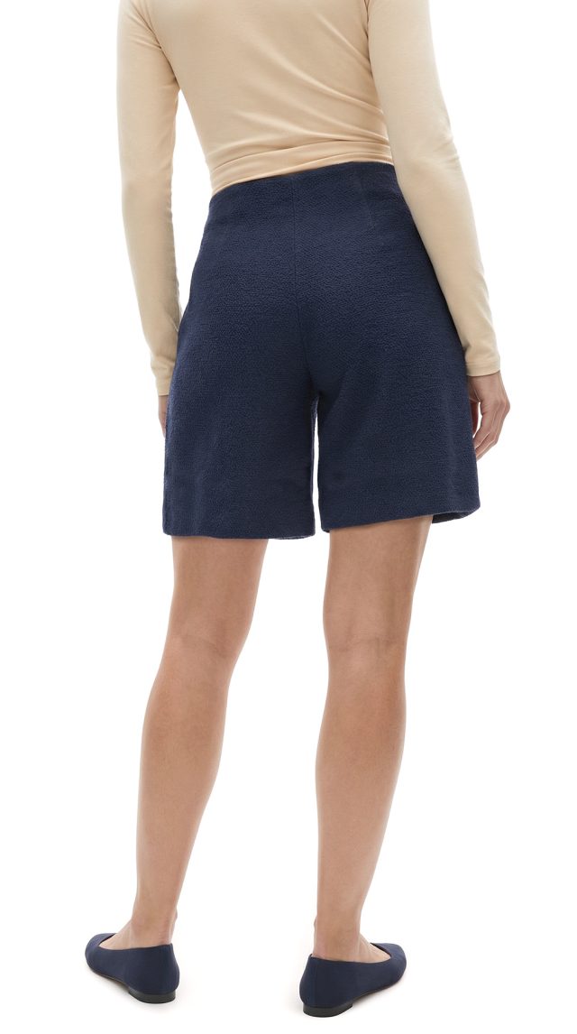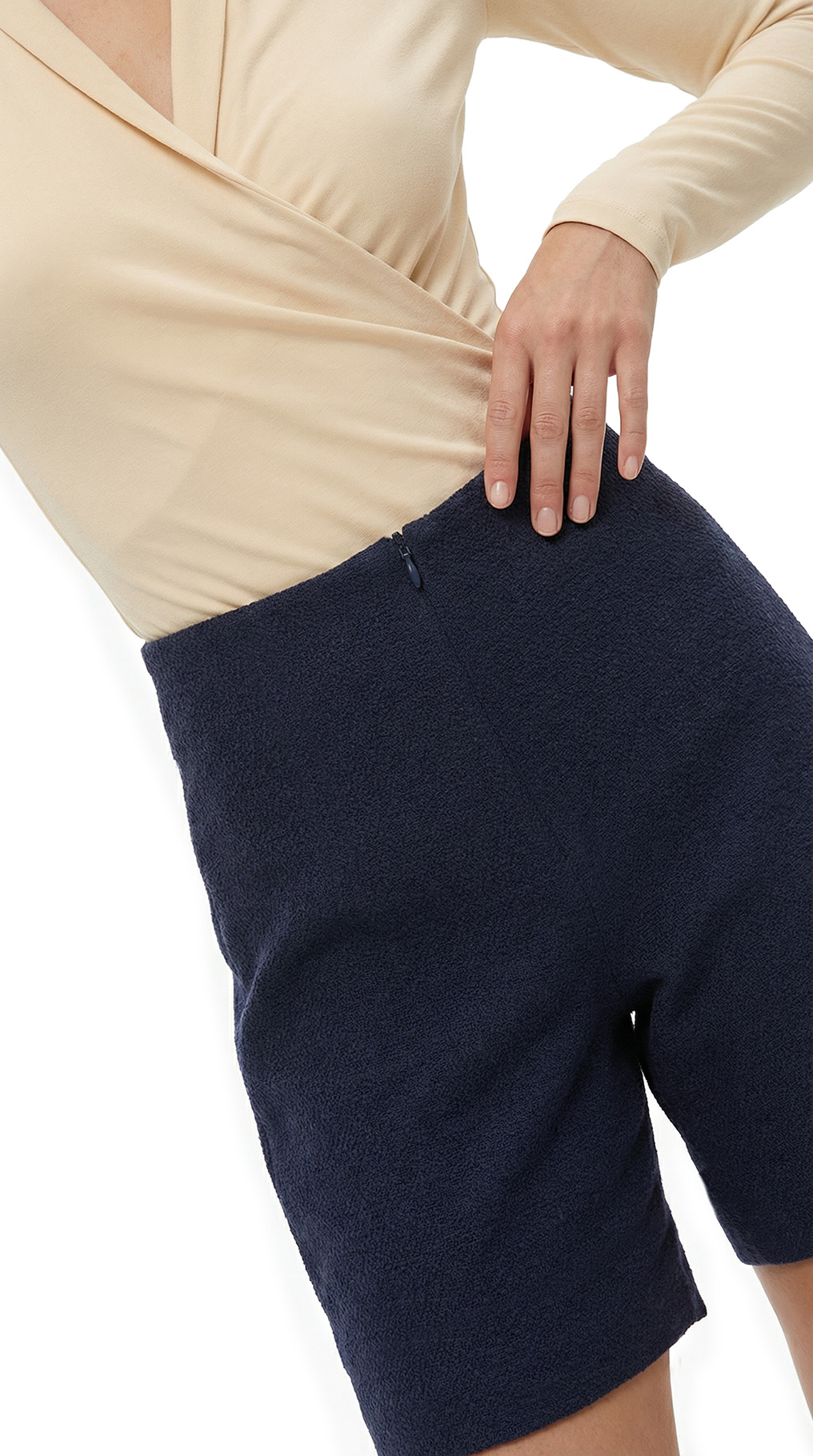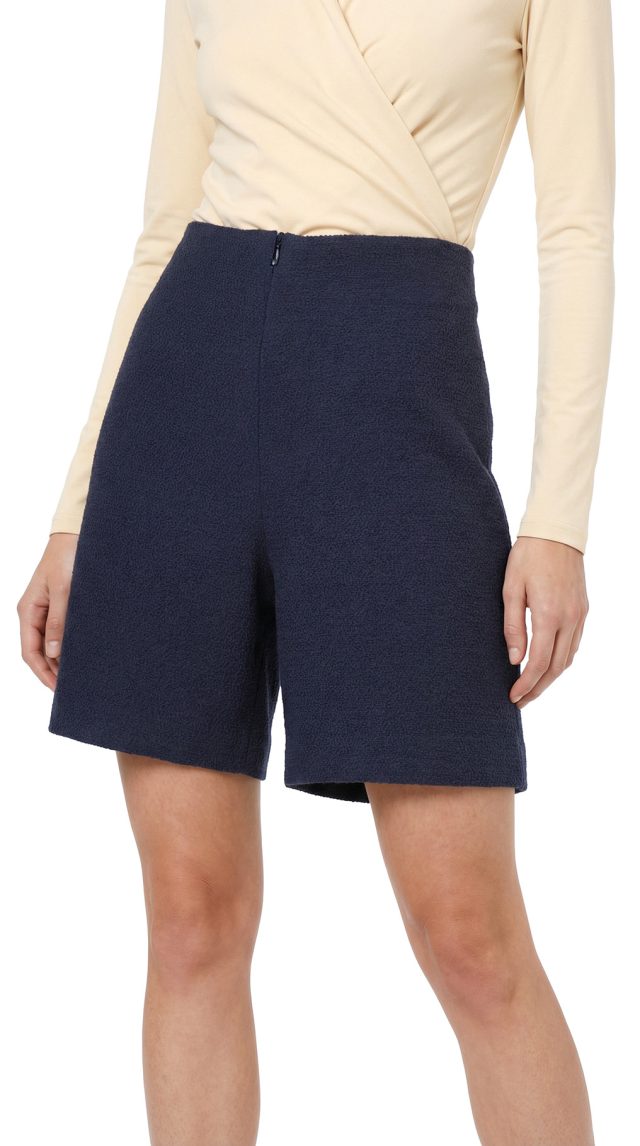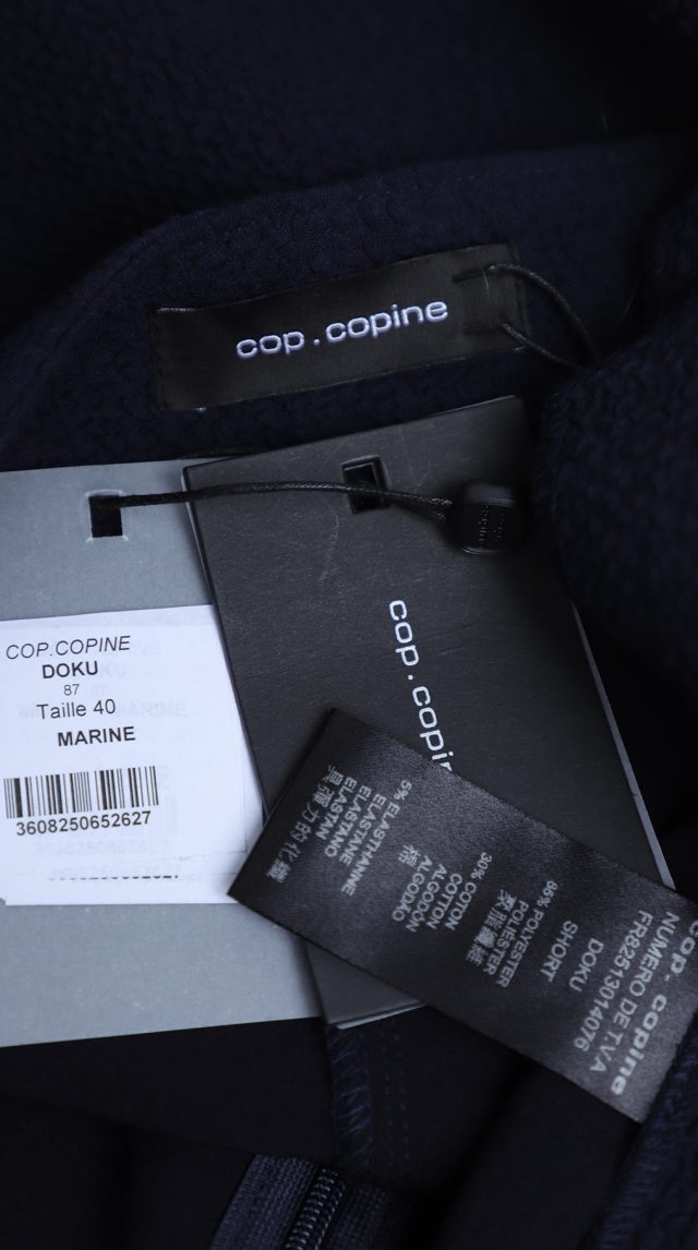 Новые юбка-шорты легендарного французского бренда Cop Copine темно-синего цвета. Посадка по талии с застежкой спереди на молнию. В составе: 65% п.э, 30% хлопок, 5% эластан, без подклада: ткань средней плотности, мягкая, эластичная, по фактуре буклированная с лицой стороны и плюшевая — по изнанке. Состояние — новое, с оригинальной запломбированной биркой Cop Copine.