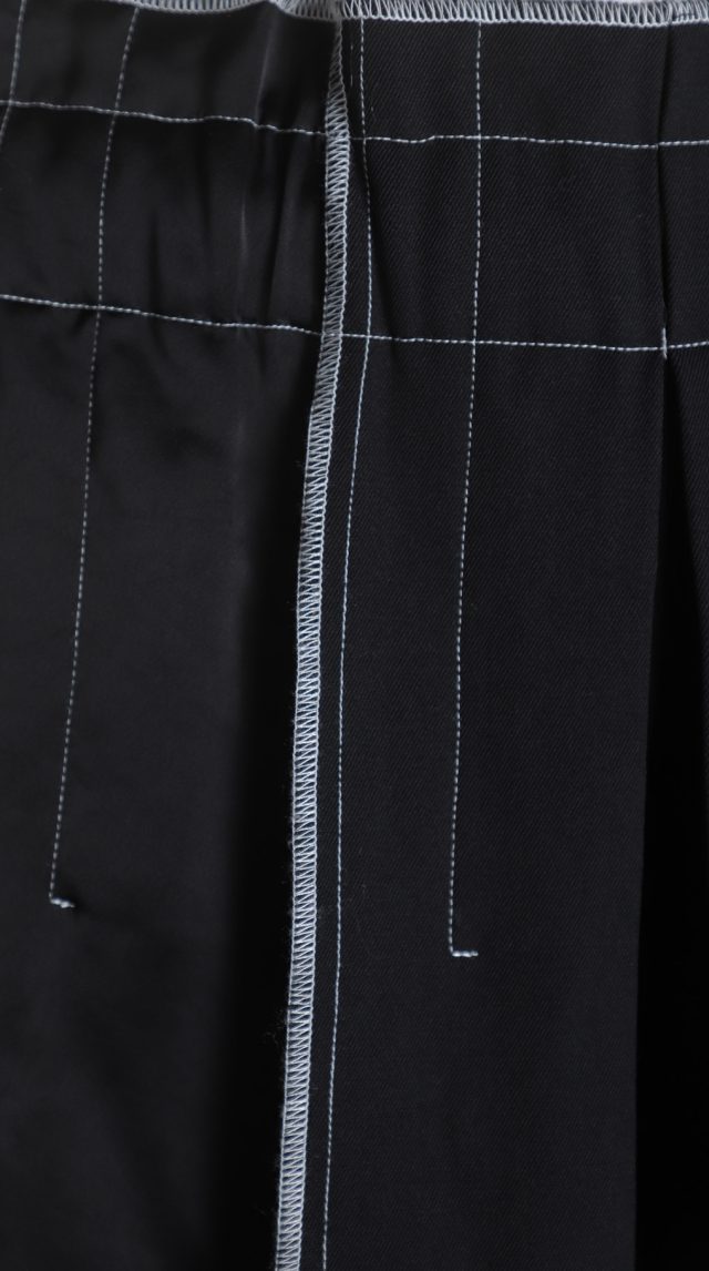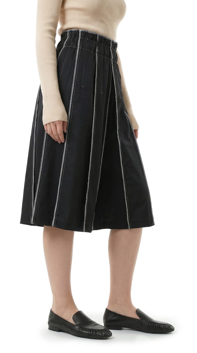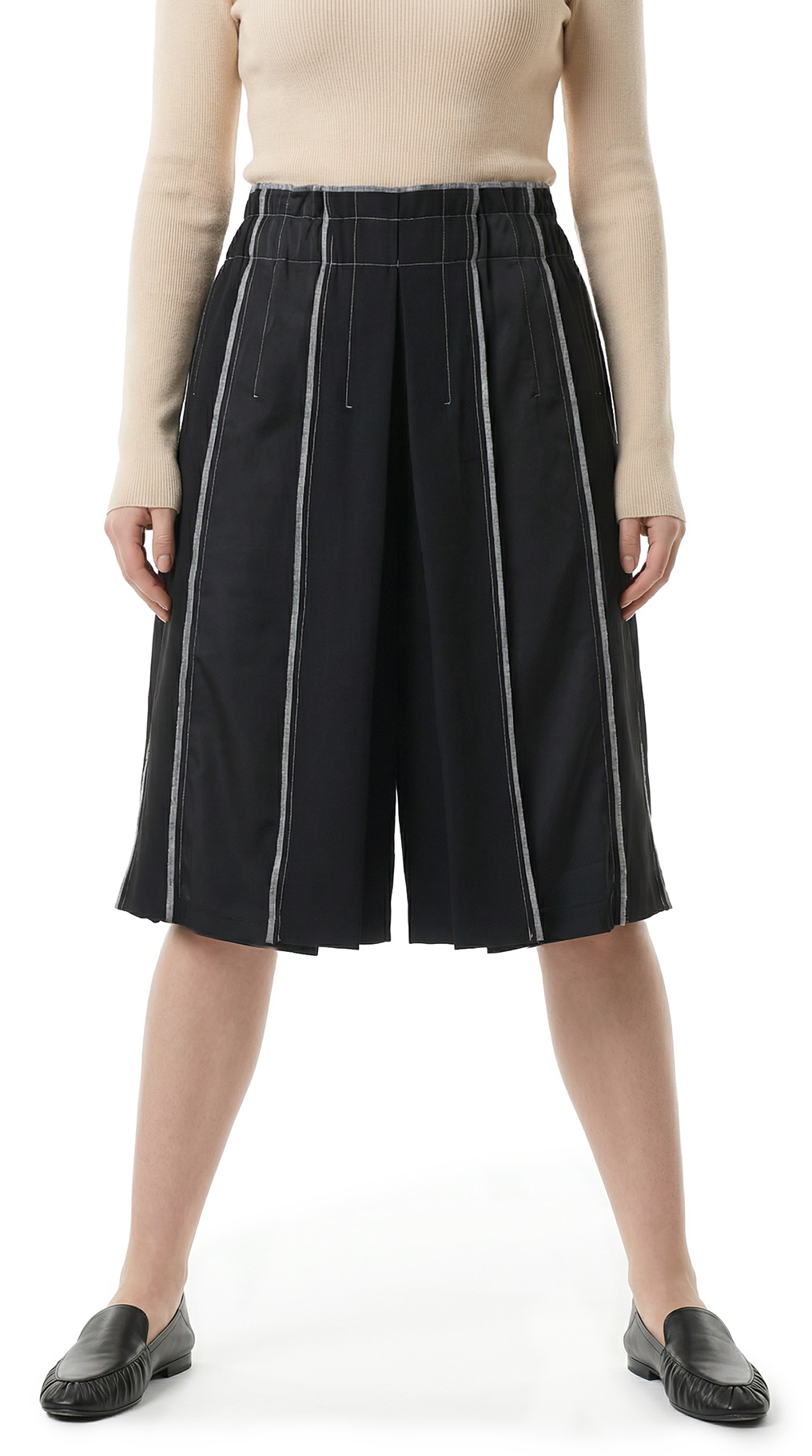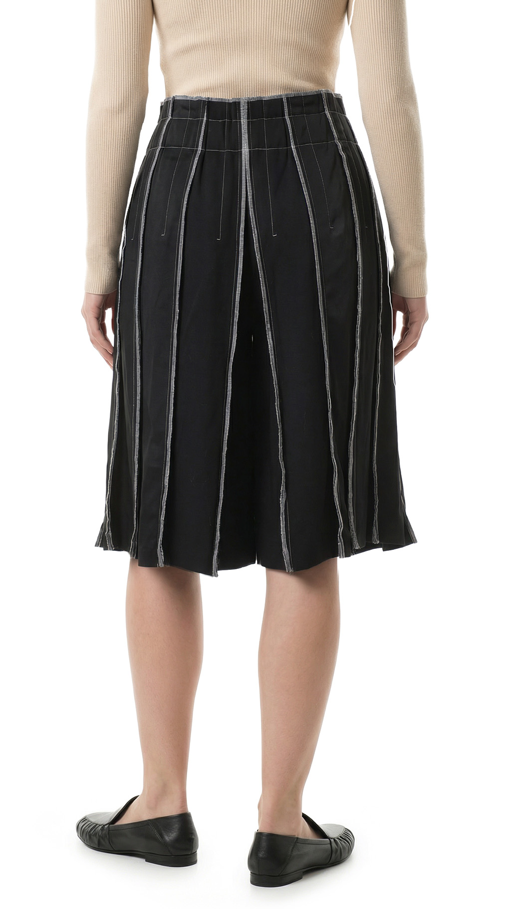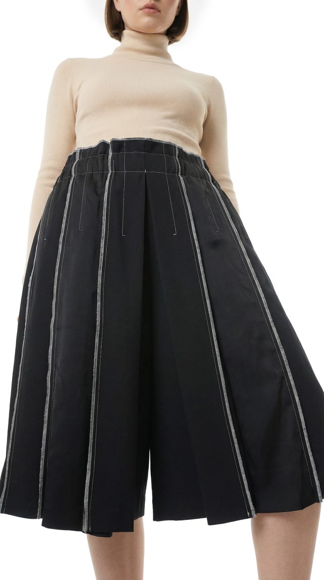 Новая юбка-шорты DKNY черного цвета. Расклешенные брючины с контрастной отделкой и чредующимися вставками из 100% шерсти и 86% натурального ацетата, 14% п/э. Широкий пояс с завязкой на шнурок. Высокая посадка. Без подклада. Продается с биркой. Цена на бирке — 298$.
