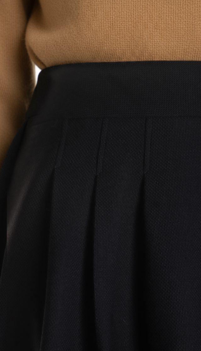 Новая шерстяная юбка-колокольчик французского бренда класса «люкс» Zapa Paris черного цвета. Комфортный широкий пояс. Складочки по переду и спинке. Врезные кармашки по бокам. Посадка по талии. Застежка по спинке на молнию. Премиальное качество пошива и материалов. В составе 87% шерсть, 13% вискоза, на подкладе из вискозы — ткань плотная, мягкая, фактурная. Эксклюзив: в единственном экземпляре в России. Состояние — новое, с фирменной биркой Zapa.